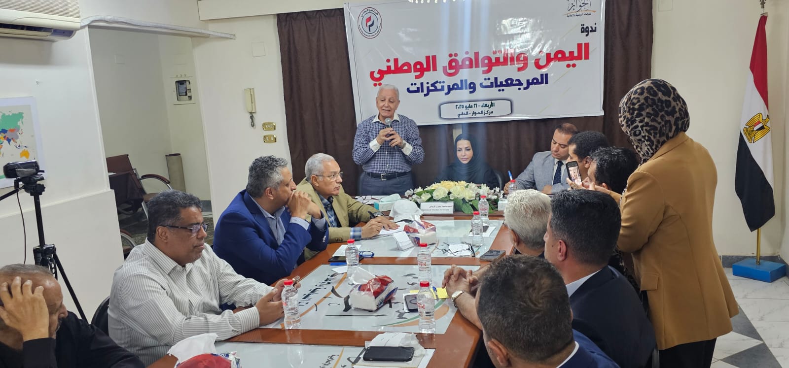 نظّم برنامج الدراسات اليمنية التابع لمركز الحوار للدراسات السياسية والإعلامية مساء الأربعاء 21 مايو 2025 ندوة سياسية بعنوان: “اليمن والتوافق الوطني.. المرجعيات والمرتكزات” برئاسة اللواء أركان حرب حمدي لبيب رئيس مؤسسة الحوار، والدبلوماسية اليمنية بشري الإرياني، رئيسة البرنامج اليمني، وأدار الفعالية الإعلامي هاني الجمل، وحضر عدد كبير من نخبة القيادات السياسية والحزبية اليمنية.
