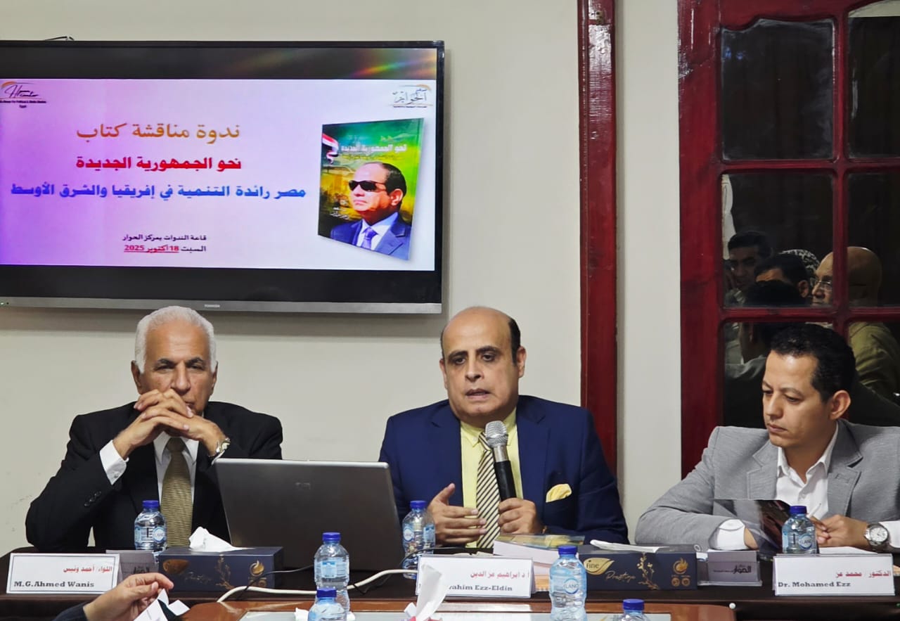 استضاف مركز الحوار للدراسات السياسية والإعلامية مؤلف كتاب “نحو الجمهورية الجديدة مصر رائدة التنمية في أفريقيا والشرق الأوسط” الاستاذ الدكتور/ إبراهيم عز الدين خلال ندوة لمناقشة الكتاب وفي مستهل الحديث أوضح المؤلف أهمية مناقشة جهود التنمية التي تقوم به الدولة المصرية في كافة المجالات مبينًا أنه قد عايش ذلك من خلال تجارب متنوعة، بدأ من القطاع الصحي الذي يشهد طفرة تنموية رائعة تجاري ما يشهده العالم المتقدم، أو حتي جهود التنمية في القطاع التعليمي وإبتكار طرق جديدة لتحسين جوده التعليمي بصورة عامة وبخاصة التعليم الجامعي للحفاظ على جوده التعليم، كما أوضح الكاتب أن مؤلفه قد عرض جهود التنمية في المجالات المختلفة السياسية والاقتصادية والاجتماعية والثقافية. وقد طالب مؤلف الكتاب بترشيح السيد الرئيس عبد الفتاح السيسي لجائزة نوبل للسلام نظرًا لدوره الرائد في السلام والتنمية.