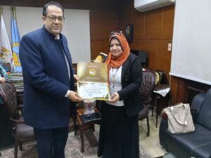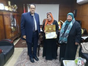 وقد قدم وكيل الوزارة شهادة تقدير للأستاذة نهلة إسماعيل، تقديرا وتكريما لها ولجهدها، متمنيا لها دوام التوفيق والتقدم.